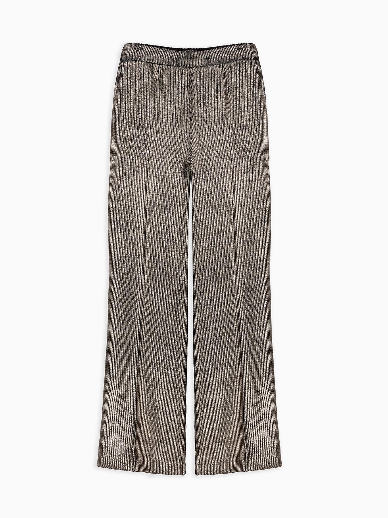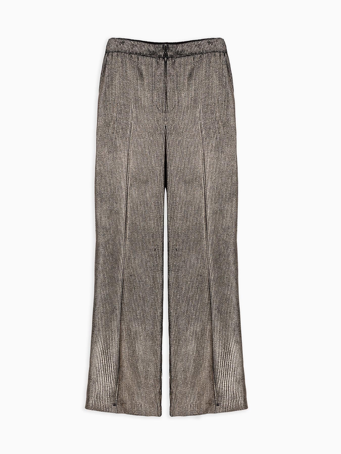 ribbed foiled corduroy pants, two French pockets at the front, central closure with hidden zip and hook, crease at the front, slim fit at the top
